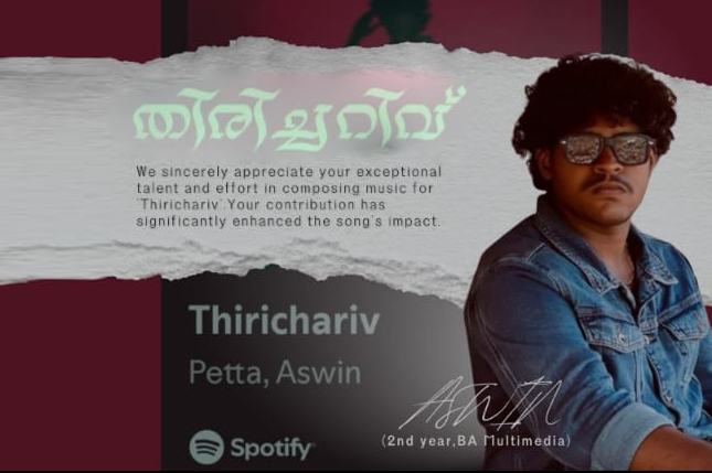 നാഫിഅ തെങ്ങിലാൻ ബി എ മൾട്ടിമീഡിയ ( 3rd semester) വേങ്ങര: തിരിച്ചറിയിവ് എന്ന ഗാനത്തിന് സംഗീതം നൽകി മലബാർ കോളേജ് ഓഫ് അഡ്വാൻസ്ഡ് സ്റ്റഡീസിന്റെ അഭിമാനമായി മാറിയിരിക്കുകയാണ് ബി എ മൾട്ടിമീഡിയ രണ്ടാം വർഷ വിദ്യാർത്ഥിയായ ഇ.പി അശ്വിൻ. സുഹൃത്തായ ഇ.വി നവനീത് ആണ് വരികൾ എഴുതുകയും പാടുകയും ചെയ്തത്. കഴിഞ്ഞ കാലത്തെ ഓർമ്മപ്പെടുത്തുന്ന രീതിയിലാണ് പാട്ട് തയ്യാറാക്കിയിരിക്കുന്നത്. രണ്ടുപേരുടെയും ആദ്യത്തെ സംരംഭമാണി ത്. വിദ്യാർത്ഥിയായി പഠനം തുടരുന്നതിനൊപ്പം തന്നെ കലാപരമായ കഴിവുകൾ മികച്ച രീതിയിൽ […]